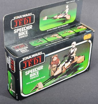 Star Wars - an original vintage 1983 Kenner made Star Wars action figure playset ' Speeder Bike Vehicle '. Complete, including the rear flaps and undercarriage gun. No instructions. Housed in its original Return Of The Jedi Kenner box. Box very near mint.