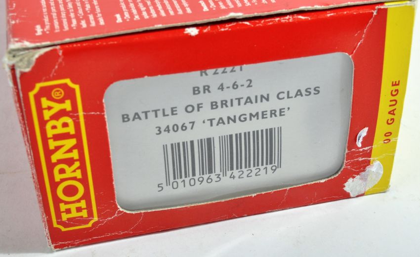 An original boxed Hornby 00 gauge model railway trainset locomotive engine No. R2221 British Railways 4-6-2 Battle Of Britain Class 34067 ' Tangmere '. The highly detailed loco appearing mint, within original box.
