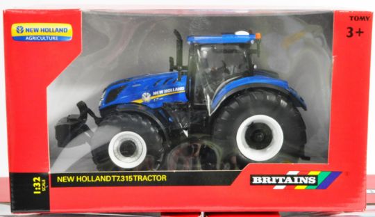 Britains - a collection of x3 Britains Farm ' New Holland Agriculture ' boxed 1/32 scale diecast model tractors - all 43149A1 New Holland Tractor. Blue. All appearing as new and unused, within their original boxes. Likely from a trade pack.