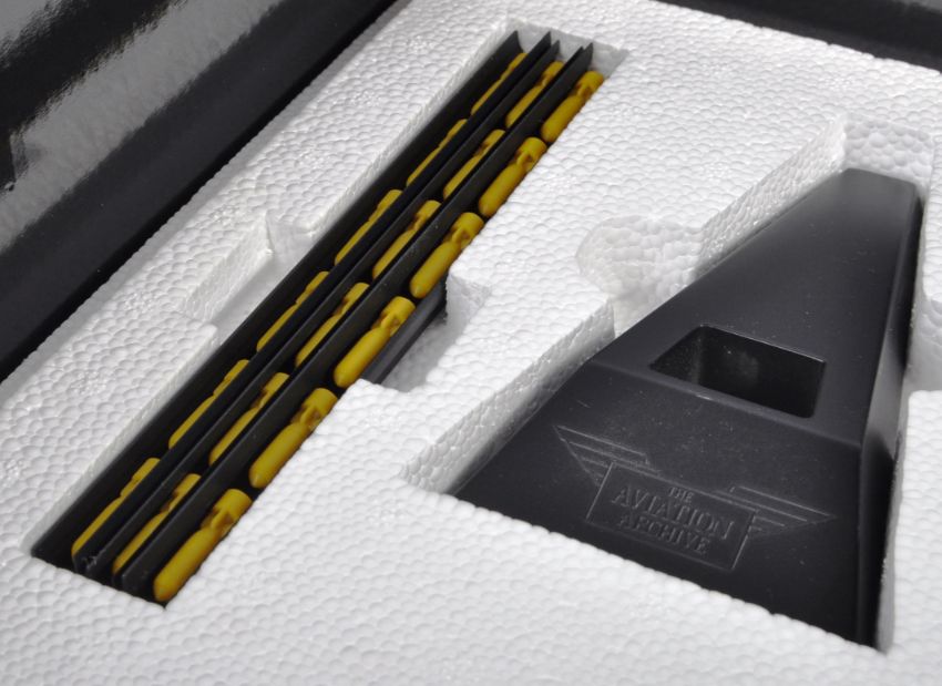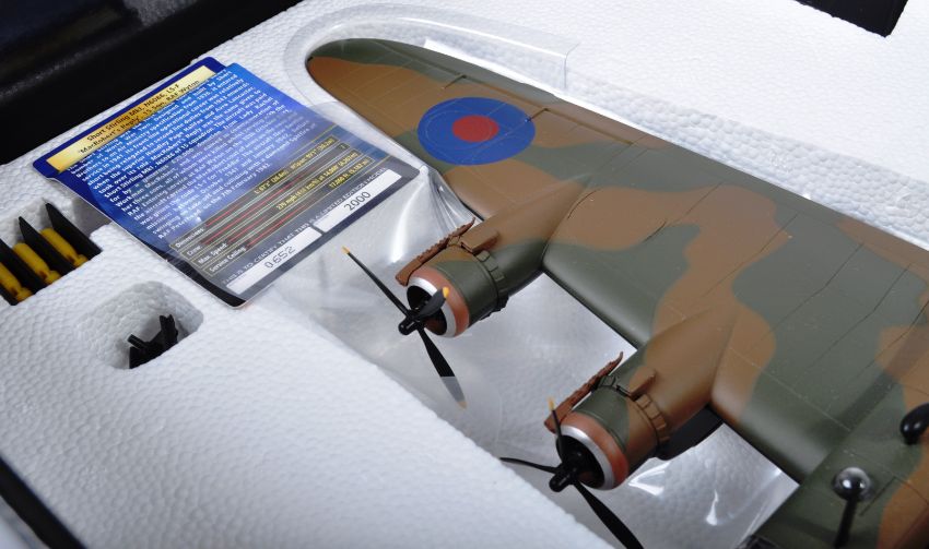 A Corgi made Aviation Archive 1/72 scale boxed military Limited Edition diecast scale model plane AA39501 Short Stirling Mk1 ' MacRobert's Reply ', 15 Squadron, RAF Wyton '. Within its original presentation box. Part of stand missing. With certificate. Highly detailed model WWII aeroplane.