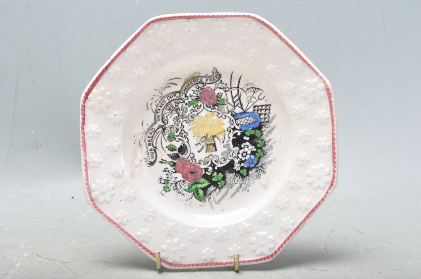 A 19th century Corn Laws plate ‘Our Bread Untaxed, Our Commerce Free being dated to 1848. Together with a similar mug.