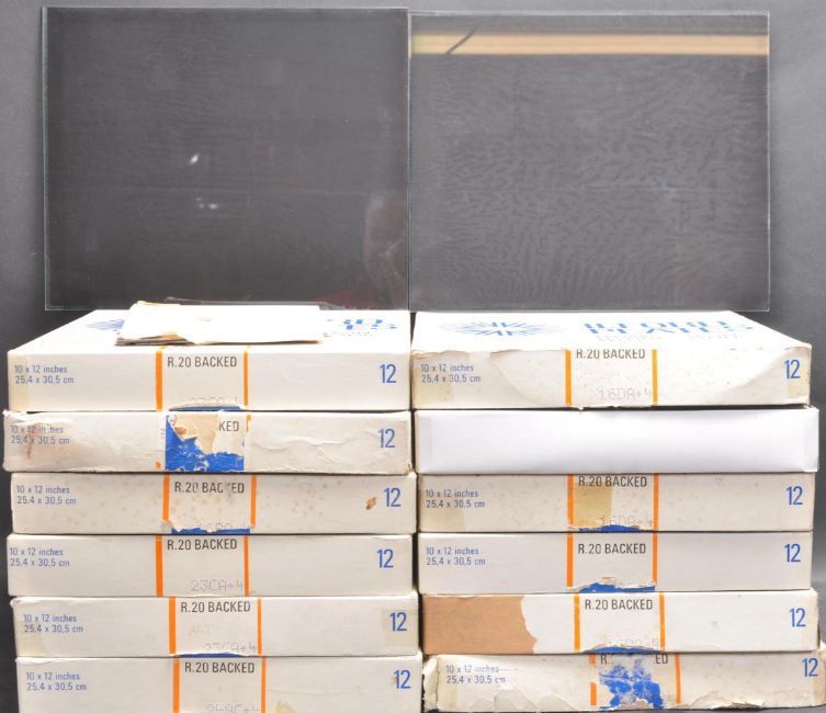 A large collection of large 1970s Raymont Fortt Studios glass negatives featuring furniture photography from BIGGS of Maidenhead as used in Antique Collector magazine. Supplied in 12 ILFORD glass plate boxes.