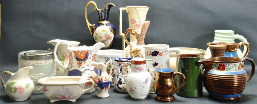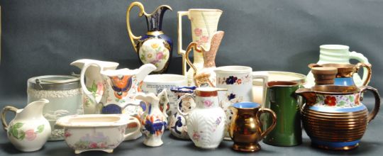 A large collection of 19th and  20th century ceramic porcelain jugs and ceramic ware to include Arthur Wood jug, Mason’s water jug, Hampton Ivory, Bourne Denby, Lustre ware, and many more.