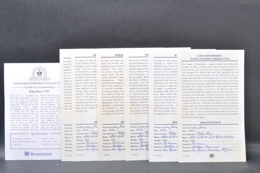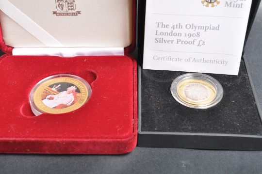 A collection of 20th century collectable and commemorative coinage comprising of a 4th Olympiad London 1908 Silver Proof £2 coin, 2001 Firth Bridge £1 coin, Diamond Jubilee 50p coin, 80th Birthday 1 Crown, 2003 Silver proof £1 coin, Henry VIII 1 Dollar 24ct  gold plate coin, Queen Mothers 90th Birthday £5 coin, 2007 Diamond Wedding Crown, 30th Olympiad £5 coin, 1997 £5 pound, 6 x Make me a soldier Lord 50p 24 carat gold plated coins, 2002 £5 coin, 3x two pound coins, Crown Copper Company, 2x Churchill Coins, 2x Australian 50p 1970/1980 and more.