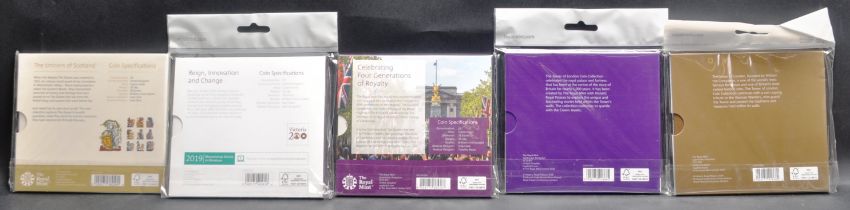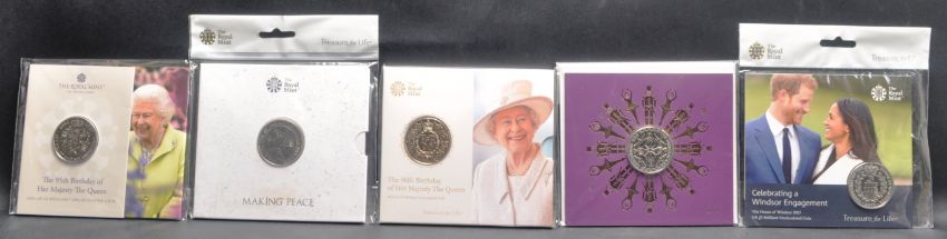 The Royal Mint - A collection of x10 Royal Mint ' Treasure For Life ' presentation £5 uncirculated commemorative coins. All mint, as new, within their original presentation packets - includes: Victoria, Historic Royal Palaces, Tower Of London Collection, 95th Birthday Of The Queen, Making Peace, One Historic Moment and others.