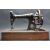 A vintage retro early 20th century circa 1930’s Singer sewing machine / portable sewing machine. The hand cranked  machine having an black enamel cast body decorated with gilded motifs raised on wooden base. Serial number: F6843686. Measures 45cm long.