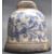 A 19th Century Chinese Oriental ceramic porcelain bell having blue and white foliate decoration over a brown incised base. Signs of wear and tear commensurate with its age. Measures 12cm