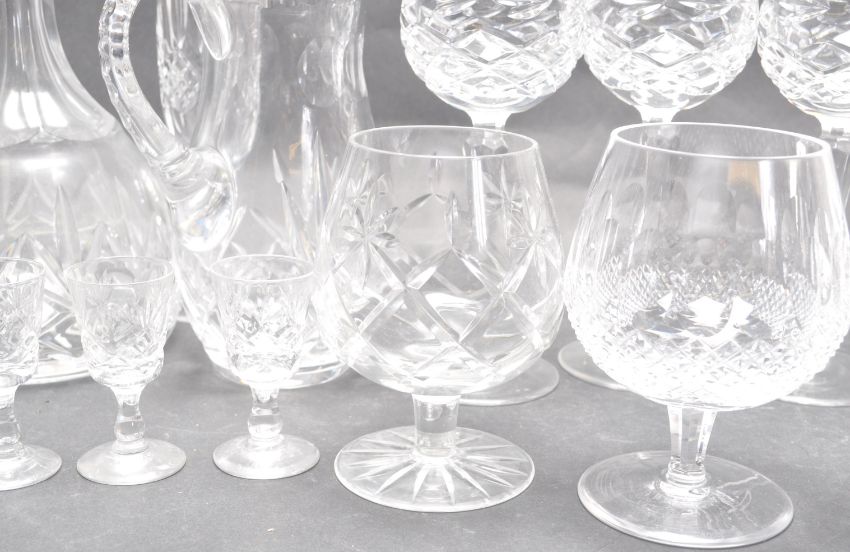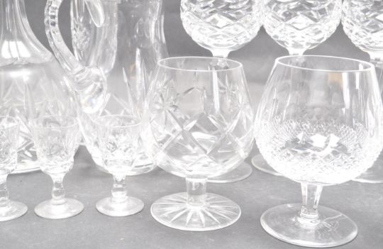 A collection of 20th century circa 1980’s crystal cut glass in the manner of Waterford to include glasses of various form and sizes decorated in geometric pattern.