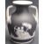 A 19th century Victorian black basalt twin handled vase having raised white neoclassical decoration. Measures 12cm high. Signs of wear and tear commensurate with its age.