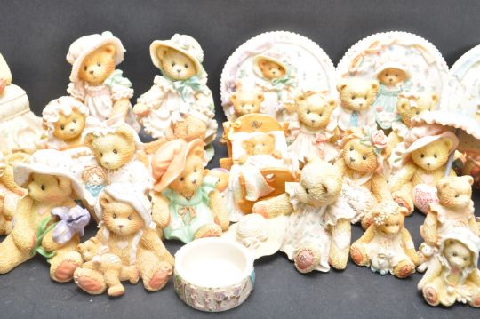 A large collection of approximately 45 late 20th century circa 1990’s cherished teddies by P. Hillman, Lic. Enesco Corporation to include: Hope 4R9/015, Be My Bow 410/101, Dorothy 544/238, Lisa 6D8/617, Violet 551/441, and many more.