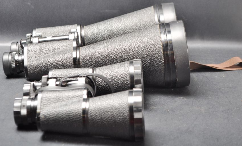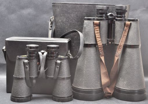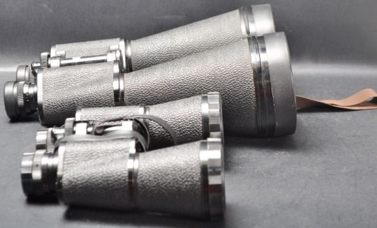 A pair of vintage retro mid 20th century binoculars / field binoculars. Viper 15 x 80 No. 7004 in original case, Ultraview 12 x 50 No. 4908 in original case.