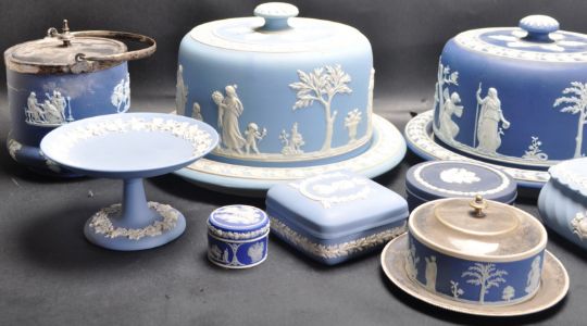 A large collection of vintage 20th century Wedgwood comprising of plates, dishes and more. All having raised neo classical embellishments. Signs of wear and tear commensurate with its age.