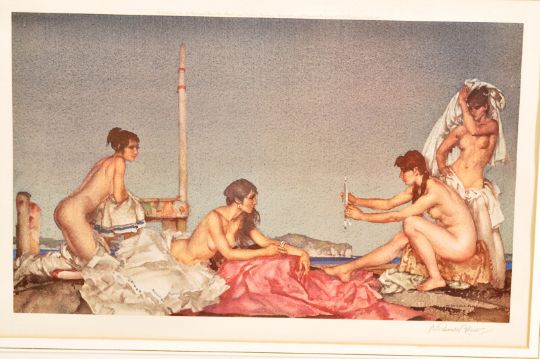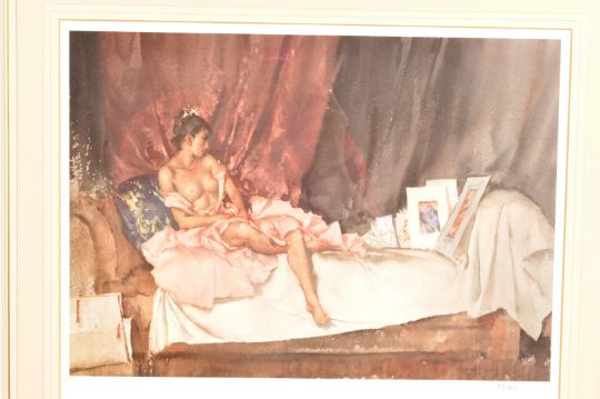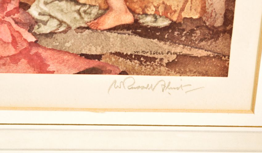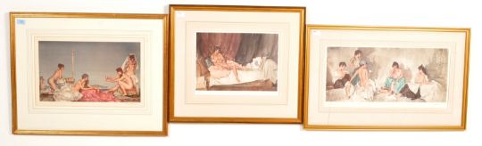 A group of three William Russell Flint (1880-1969) prints to include ' The Silver Mirror' signed by the artist, a 'Cecelia and her studies' limited edition no. 155/350 and 'Five Studies of Cecelia' limited edition number 141/850. Measures 56 x 71 cm.