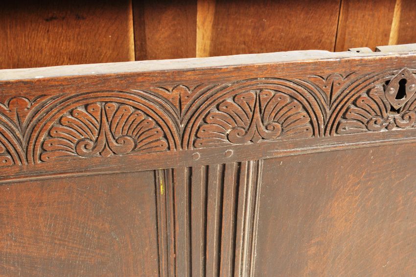 A 19th century Victorian oak coffer / blanket box. The coffer of a large rectangular form with hinged lid and carved decoration raised on square legs. A/F. Measures 78 x 125 x 57 cm.