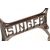 A vintage retro mid 20th century cast iron and wood garden table / pub table. The table having a wooden rectangular top with rounded corners raised on cast iron singer sewing machine base finished in black enamel paint. 74cm x 90cm x 44cm.
