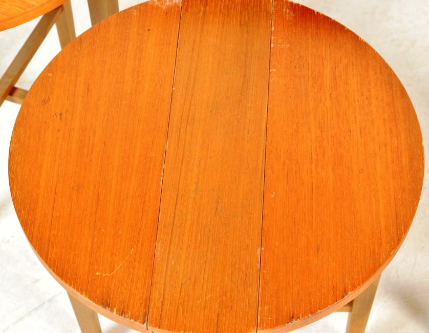 Believed Poul Hundevad - A set of retro vintage 20th Century Czech teak wood nesting tables. The nest of tables comprising one large coffee tables with four smaller folding circular tables to the lower tier. Measures, 57cm x 63cm x 42cm.