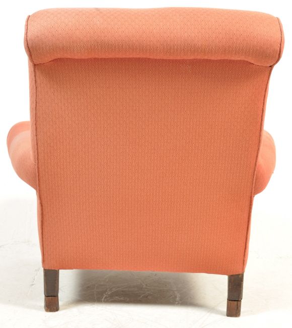 A 19th century Victorian Howard of London style armchairs / club chairs / easy chair having red fabric upholstery raised on turned legs to the front and shaped to the back. Measures 93 x 97 x 113 cm.
