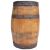 An early 20th Century oak and iron bound coopered barrel stick stand of typical form with orange painted interior. Measures approx; 36cm x 22cm.