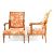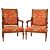 A pair of 19th Century walnut carved armchairs. The fauteuil armchairs of large throne size having a carved backrest with red ground floral upholstered back and cushioned seat with scroll armrests. All raised on turned legs with bladed knops. Measures approx; 101cm x 64cm x 60cm.