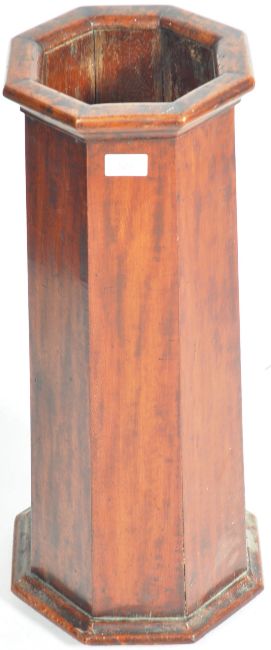 A 19th Century mahogany octagon form stick stand / umbrella stand of gun barrel / chimney shape. Flared shaped rim with tapering canted sides and flared octagonal base. Measures approx; 66cm x 23cm.