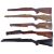 A collection of x5 assorted wooden shotgun rifle stocks, one carved with scroll work to the fore-end and one inlaid with a metal Brocock makers coin. Each to measure approx 80cm.