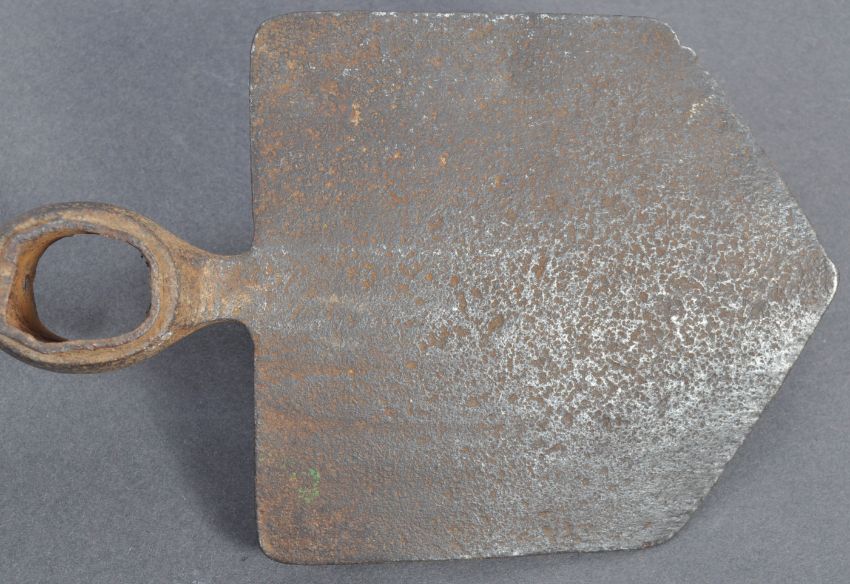 A scarce original WWI First World War British Army issued Entrenching Tool / pickaxe head. Usual form, with pick to one end and shovel to the other. The head marked with makers marks ' Perks ' and dated 1918.