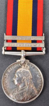 Boer War - Victorian 19th Century Queen's South Africa Medal awarded to one 4325 W. M. Scott of the 5th Royal Irish Lancers. With clasps for Defence Of Ladysmith and Elandslaagte. With ribbon. Supplied with some later research. Scott born in Portland, Dorset.