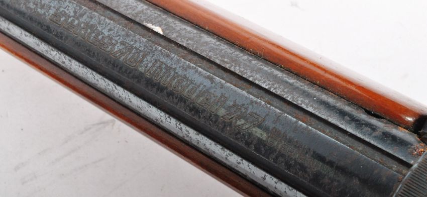 A vintage 1970s Diana made ' Series 70 ' .22 calibre break barrel air rifle. Wooden stock, with maker's marks to top of barrel and adjustable sight. Working order, some surface rust. Measures approx; 98cm long.