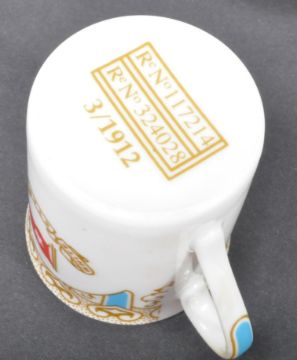 RMS Titanic Interest - a collection of Stonier & Co reproduction White Star Line Wisteria pattern table wear / ceramics. Comprising a cup and saucer, sugar basin, coffee cup etc. All with maker's marks to base. No visible damage.