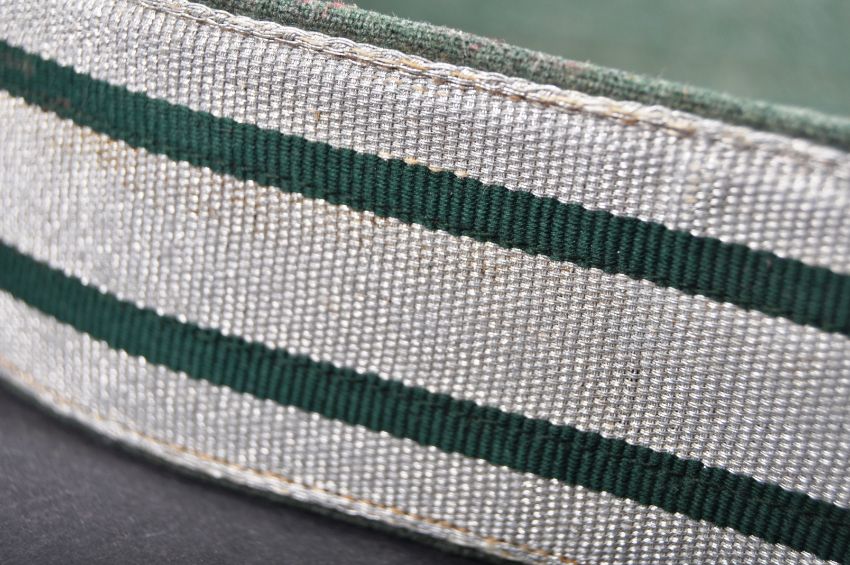 WWII Second World War Third Reich Nazi German Wehrmacht Officers ceremonial / parade uniform belt. Olive green fabric with silver aluminium bullion thread panels and white metal central buckle depicting the Nazi eagle and Swastika surrounded by oak leaves.