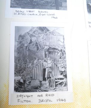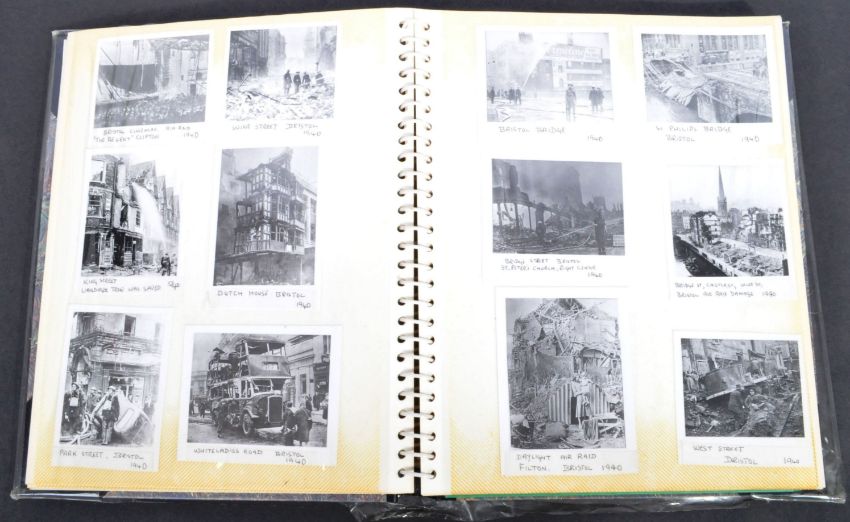 Local Bristol Interest - a well-filled album of black and white photographs from the Second World War, showing scenes of Bristol and surrounding areas, various ARP images, bomb damage, and other such views. Each image annotated underneath, and a detailed handwritten list from the original creator is also included. Photographs are c1970s reprints, some famous images (likely from books), but others possibly unpublished. Interesting local history.