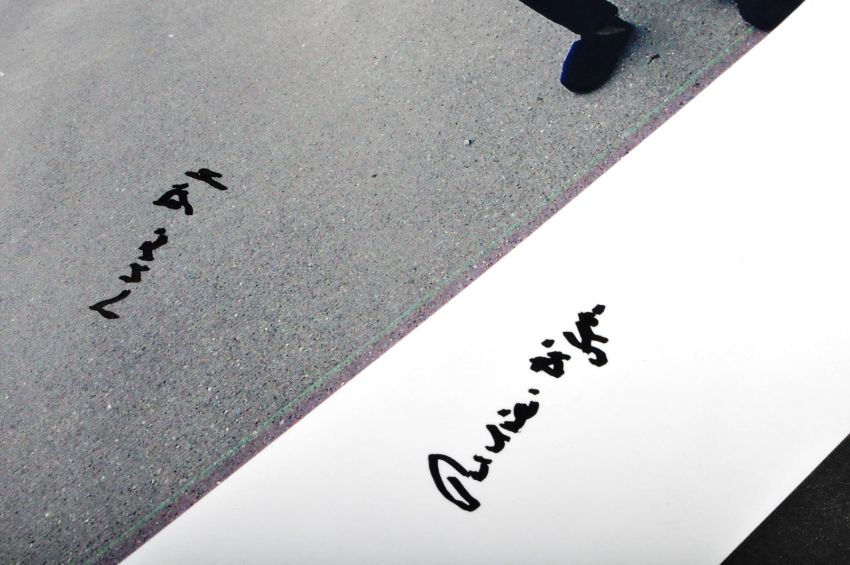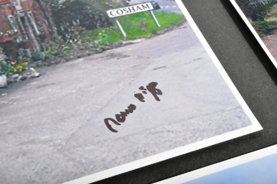 The Great Train Robbery - Ronnie Biggs (1929-2013) - a collection of x5 autographed A4 (and similar size) humorous photographs, self-printed by Biggs. Includes two images with comments towards Politician Jack Straw, a photograph of 'The Jack Mills Head' pub, a photograph of Biggs holding up his own Wanted poster, and another image of Biggs outside the 'Jack Mills Head' pub. All obtained personally by the vendor.
