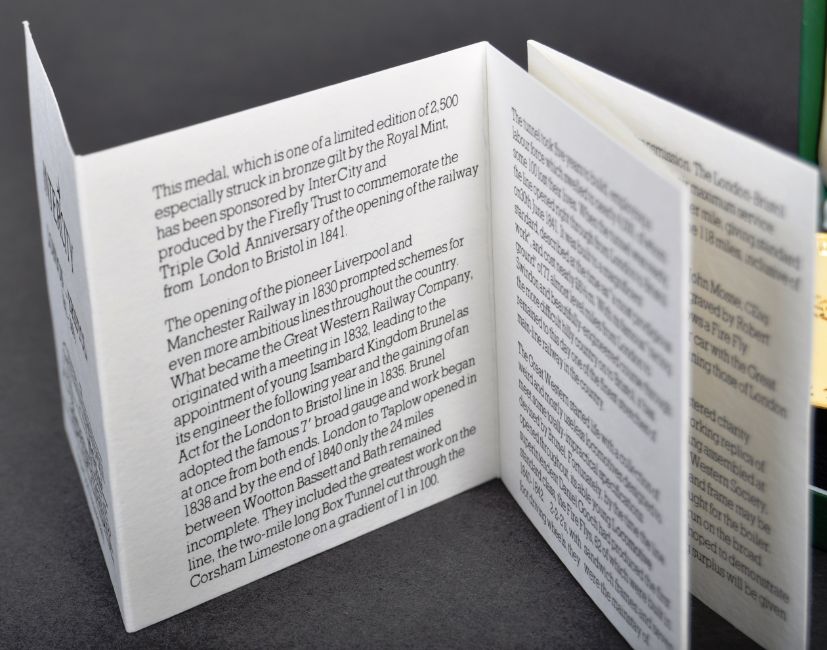 Railwayana - a Limited Edition Royal Mint bronze gilt medallion commemorating 150 years of the Intercity railway line from London to Bristol. The large medallion depicting an Intercity locomotive to the front  with London - Bristol and the dates 1841 - 1991 to the perimeter. The reverse reading ' Achievement In The Past. Investment For The Future '. Housed in the original green presentation case with certificate. Medallion measures approx 6cm.