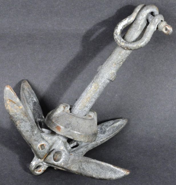 A WWII Second World War British Army Commando / Special Forces grappling hook anchor. A four pronged folding example with locking cap. Dated faintly 1941 to the spine. Measures approx 22cm.