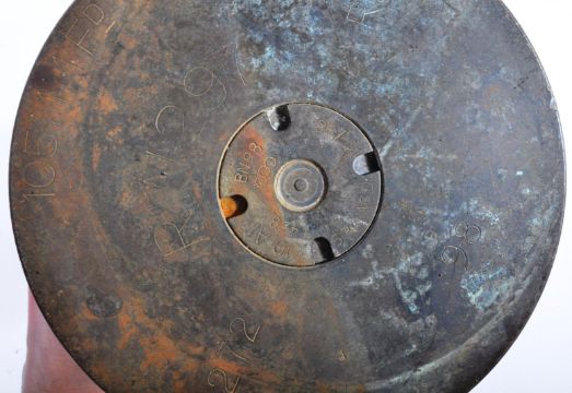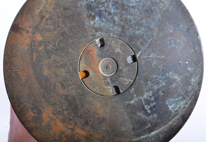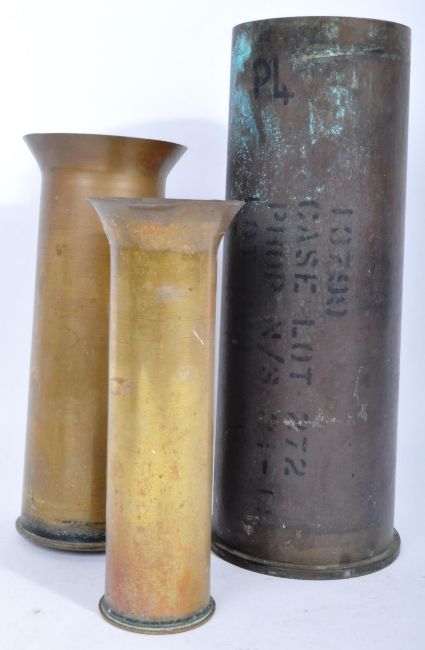 An original post WWII Second World War 1949 dated Czech M32 helmet and x3 assorted later period Artillery / field gun ammunition shells. The helmet retaining the canvas chin strap and x3 leather pads attached directly to the shell. Dated 1949 to the inside rear rim.