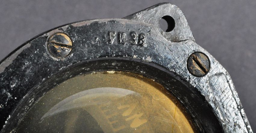 An original WWII Second World War Third Reich Nazi German Luftwaffe cockpit compass, by repute from a crashed Messerschmitt BF 110C-4, which was attacked by a fighter during the Battle of Britain on 6th September 1940. It is believed that the attacking plane was a Hurricane from 111 Squadron. The attack took place during a mission over Kenley. The Messerschmitt was abandoned by the crew who safely bailed out following an explosion in the aircraft which then crash landed on the golf course at Cannons Hill, Coulsdon around 9.30am - where this compass was recovered as a souvenir. The bezel marked with ' FK38 ' and ' F123233 '.