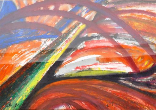 Attributed to Antoine Mortier (1908-1999) - A retro mid 20th Century composition abstract watercolour on paper painting formed from various brush strokes in varying colours. Signed to the bottom left and being framed and glazed. Measures approx; 55cm x 66cm.
