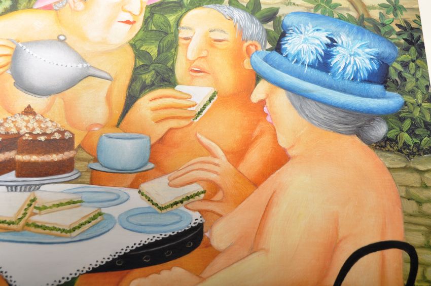 Beryl Cook ( British 20th Century ) - Alexander Gallery Publications Ltd - A limited edition signed print entitled ' Tea In The Garden ' signed in pencil to the margin. Unframed. Measures; 59cm x 53cm.