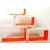 A graduating set of four retro 20th Century rounded cube shelving units of wooden construction having white finished exteriors and orange interiors. Each with wall mountable backs. Larges measures approx; 30cm x 50cm x 20cm.