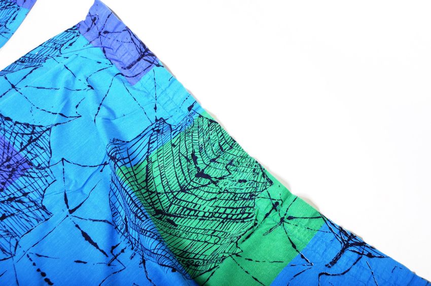 Lucienne Day - Linden - A pair of retro 1960's designer woven and printed curtains retailed by Heals of London. Each in the blue Linden pattern design with printed makers marks to the base of each. Slight fraying to the ends of each, overall good condition to each. Each measures approx; 112cm x 207cm.