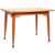 A retro vintage mid 20th Century beech and formica topped dining / kitchen table having a vibrant yellow top with shaped beech wood frieze below. Raised on tapering supports upon ball feet. Wear commensurate with age. Measures approx; 75cm x 106cm x 75cm.