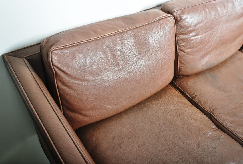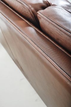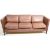 After Borge Mogensen (Børge) - A retro vintage 20th Century Danish leather three seater sofa settee having brown leather seat cushions and backs with shaped angled arms all raised on small square leg supports. Wear commensurate with age, some zips are loose, overall good condition. Measures approx; 69cm x 201cm x 69cm.