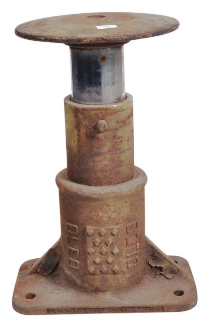 A large original early 20th Century cast metal train steam locomotive buffer of typical form with circular top and base cast with railway lettering. Measures approx; 60cm tall.