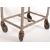 A retro vintage mid 20th Century Industrial workman's single tier trolley / table aid of simple rectangular form having a inset wooden panel top with metal surround. All being raised and supported by tubular legs united by stretchers upin thick rubber castors. Measures approx; 49cm x 57cm x 42cm.