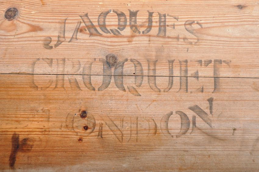 Jaques Of London - An original 20th Century retro vintage Croquet set contained within the original box. Comprises of mallets, balls and hoops with vibrant label to the interior and stencilled makers mark to exterior of box. Measures approx 11cm wide.