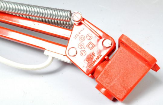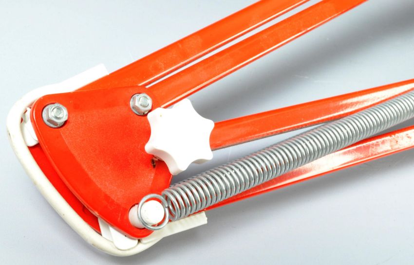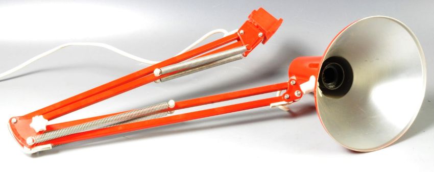 HCF - A retro vintage 20th Century Danish anglepoise mountable desk / table lamp light finished in red having an aluminium pendant shade with cooling holes and button to the back. Makers marks present to the arm. Sold as untested with wear commensurate with age, overall a good example. Measures approx; 98cm long fully extended.