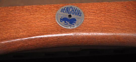 Ben Chairs ' Benchairs ' of Stowe - A pair of mid 20th Century retro vintage dining chairs having the bentwood beech frame and tapering legs upholstered in green vinyl and velour backrest and seat pad. Measures 83cm x 46cm x 46cm.