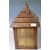 A late 19th Century Arts & Crafts hanging porch lantern lamp light of oak construction having a pyramidal top with iron hanging hook atop. Below four amber coloured glass panels forming the sides with oak frames. Wear commensurate with age. Measures approx; 40cm x 23cm x 23cm.