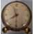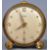 Imhof - A retro vintage mid 20th Century Swiss 8 day desk / bedside table clock having a barrel case with perspex front and silvered dial with batton and Arabic numeral chapter ring. Raised on brass supports. Measures approx; 7cm diameter.