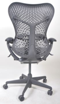 Studio 7.5 - Herman Miller - Mirra 2 - A late 20th Century retro swivel desk chair with adjustable positioning for posture. The armchair raised on a five point star base and castors. Mould marks for Herman Miller to the back. Measures 102cm x 73cm